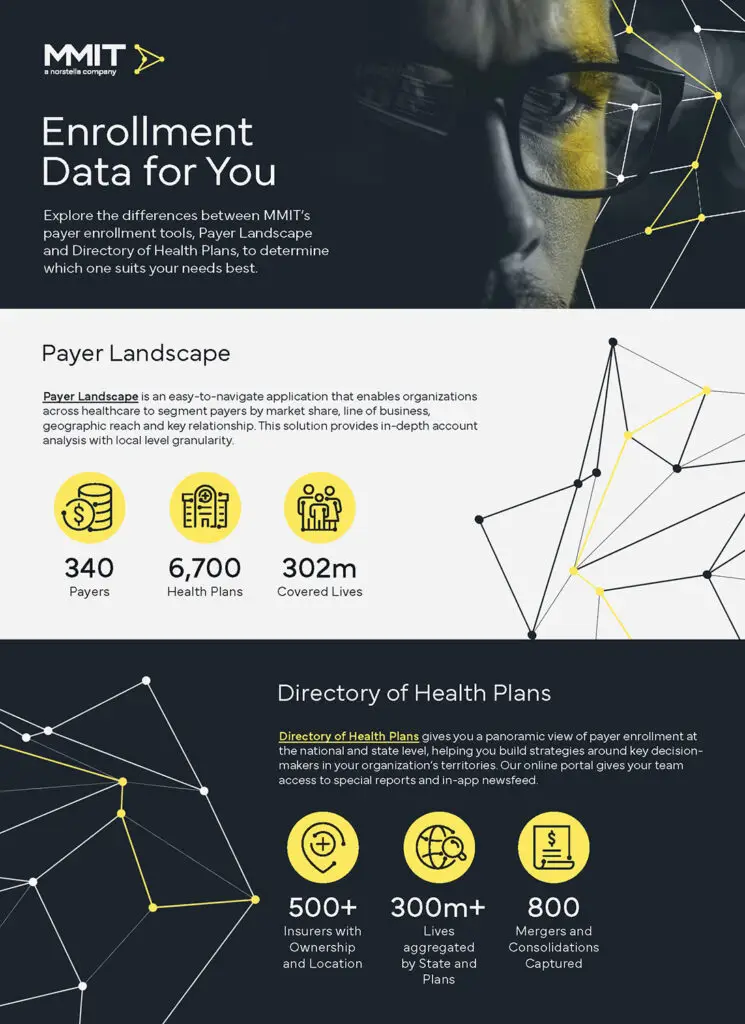 Confident payer engagement starts with the right tools. Explore how MMIT’s Directory of Health Plans and Payer Landscape deliver the insights you need, whether you're sizing the market or analyzing payer dynamics. Check out the infographic to find the best fit for your strategy.